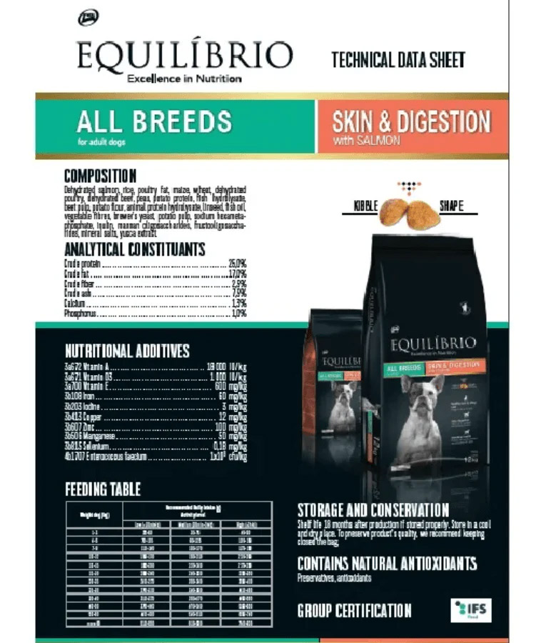 Réalimentation complète et équilibrée pour les chiens adultes sensibles de toutes races, formulé avec du saumon comme premier ingrédient pour soutenir la digestion, la santé de la peau et la vitalité globale.