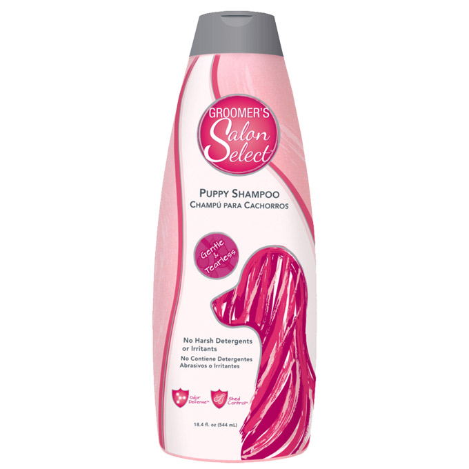 Le shampooing pour chiots Groomer's Salon Select™ ne contient pas de détergents ou d'irritants agressifs pour protéger la peau sensible de votre chiot et a l'avantage supplémentaire d'être hypoallergénique et sans larmes. Le shampooing pour chiots Salon Select™ de Groomer garde le pelage doux et conditionné tout en laissant un parfum de poudre pour bébé frais et propre.